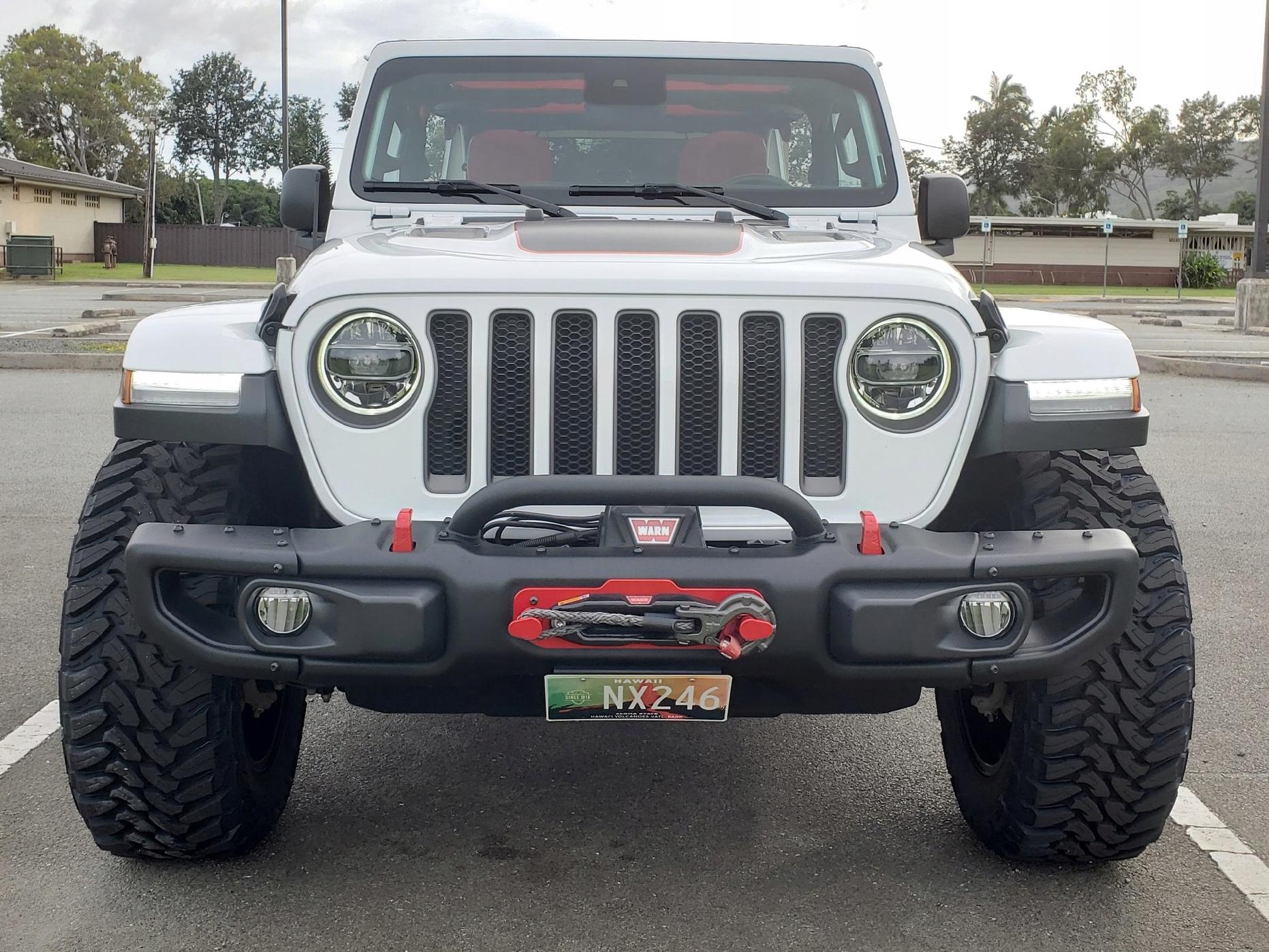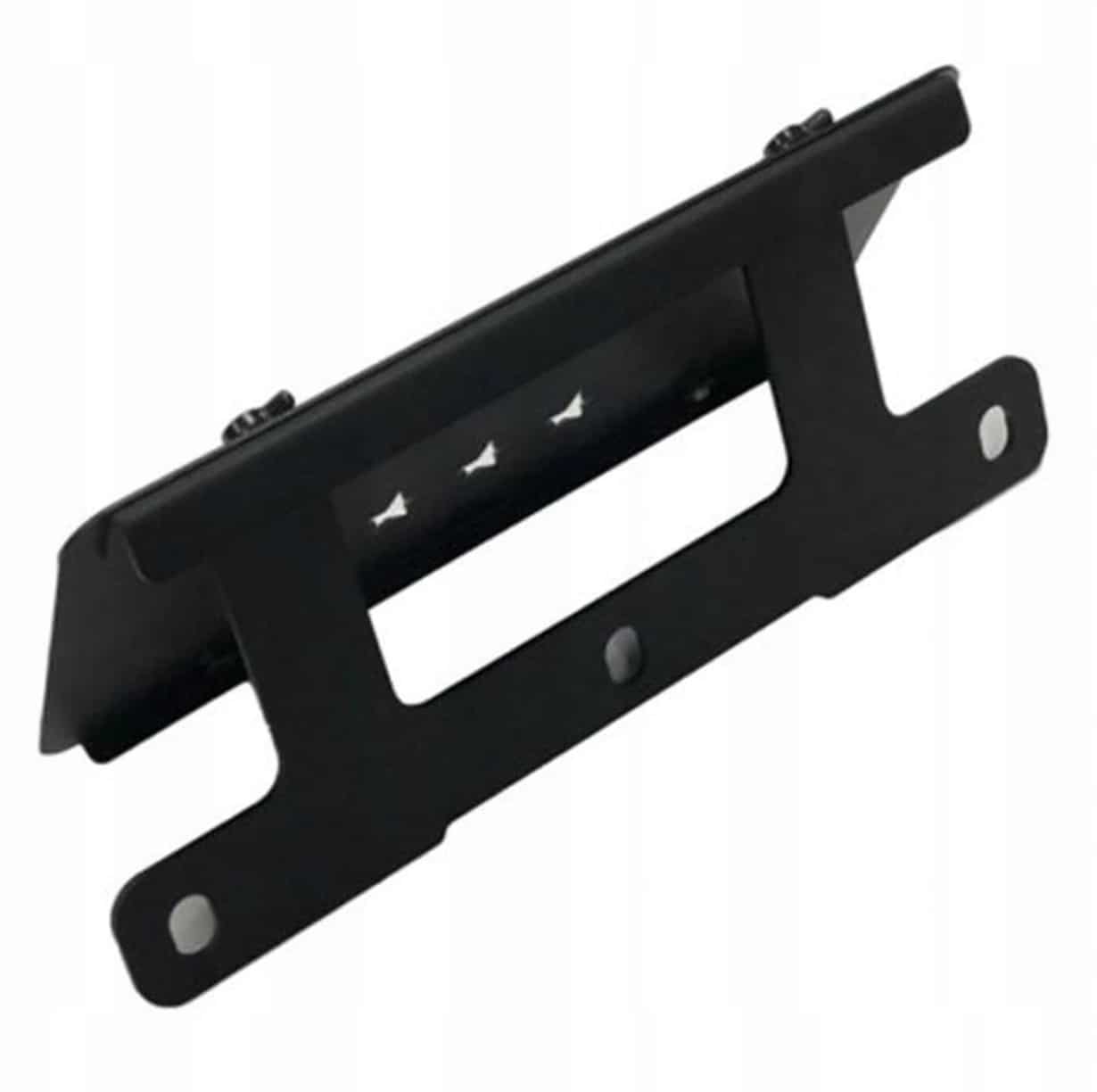 Mocowanie przedniej tablicy rejestracyjnej do zderzaka stalowego Jeep Wrangler Rubicon JL. Wycinane laserowo z aluminium, podwójnie malowane proszkowo. Nie wymaga wiercenia, montaż przy użyciu fabrycznych śrub.