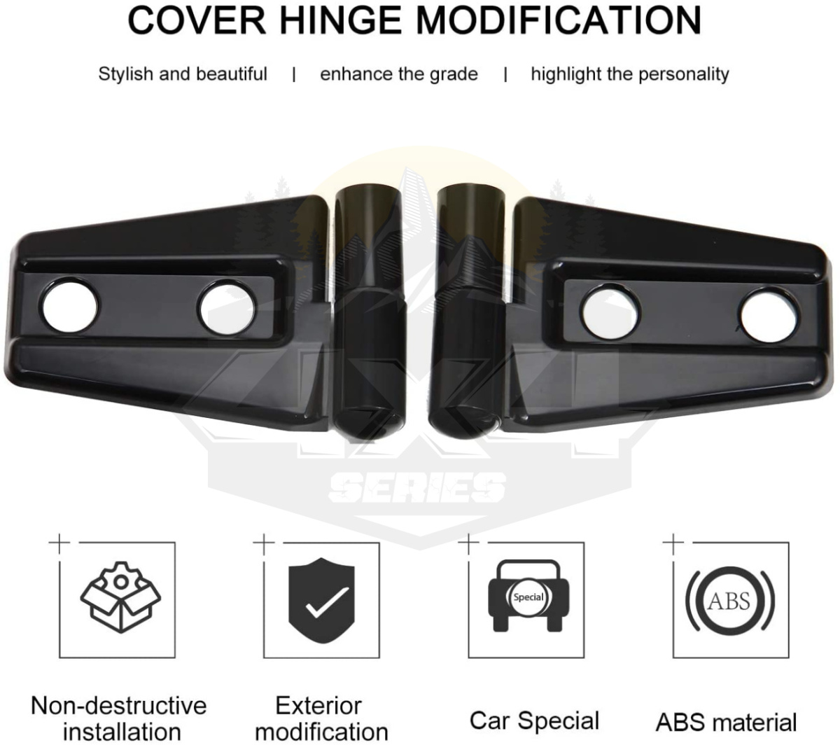 Nakładki zawiasów drzwi 4D przeznaczone do Jeepa Wrangler JK z lat 2007–2017 to praktyczny i estetyczny dodatek, który skutecznie poprawia wygląd pojazdu. Wykonane z wysokiej jakości tworzywa sztucznego, odpornego na warunki atmosferyczne, promieniowanie UV oraz uszkodzenia mechaniczne.