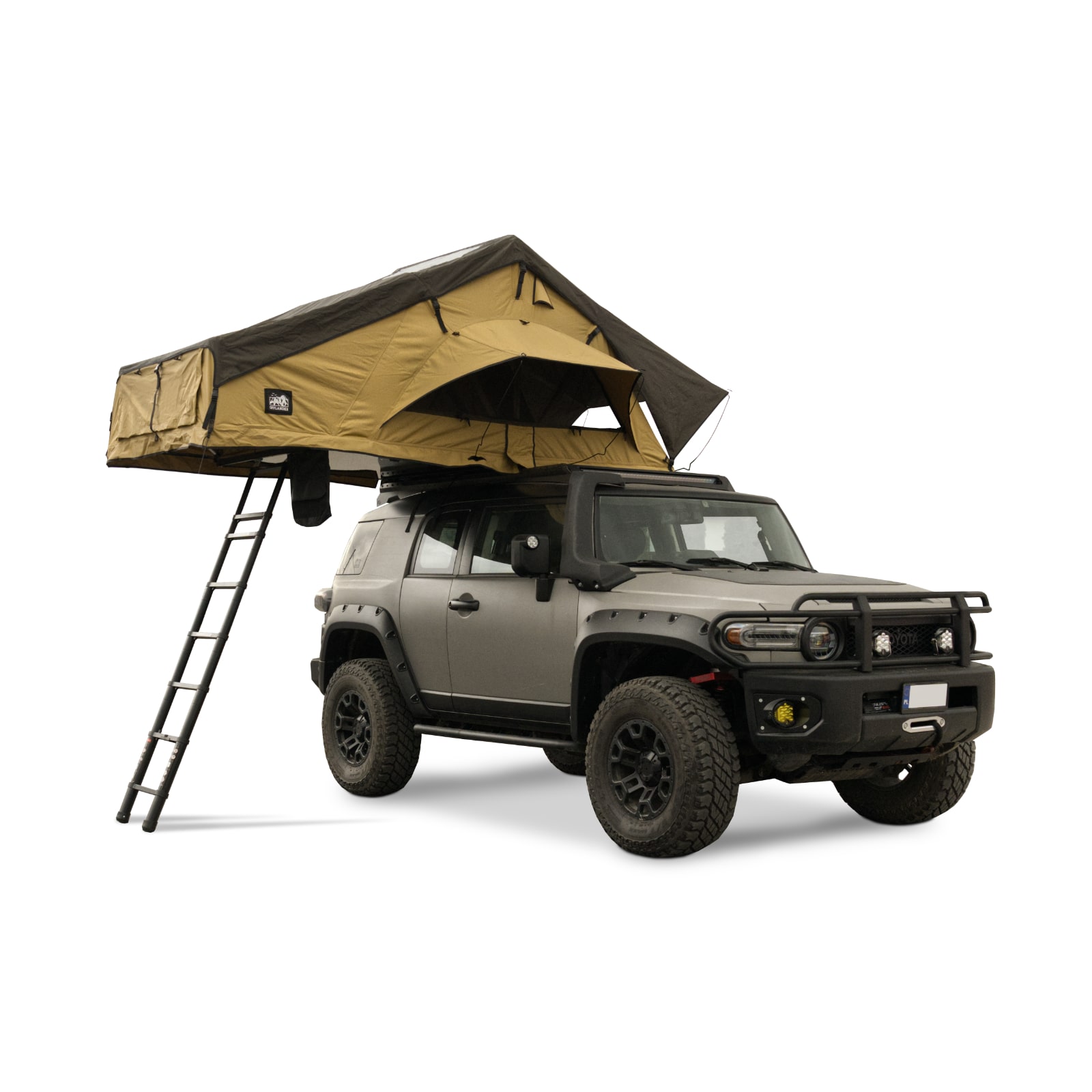 W przeciwieństwie do niektórych modeli namiotów dachowych, SOFT CAHAYA 140 nie posiada twardej skorupy, lecz wytrzymały pokrowiec z PVC, który zabezpiecza namiot przed czynnikami zewnętrznymi podczas transportu.