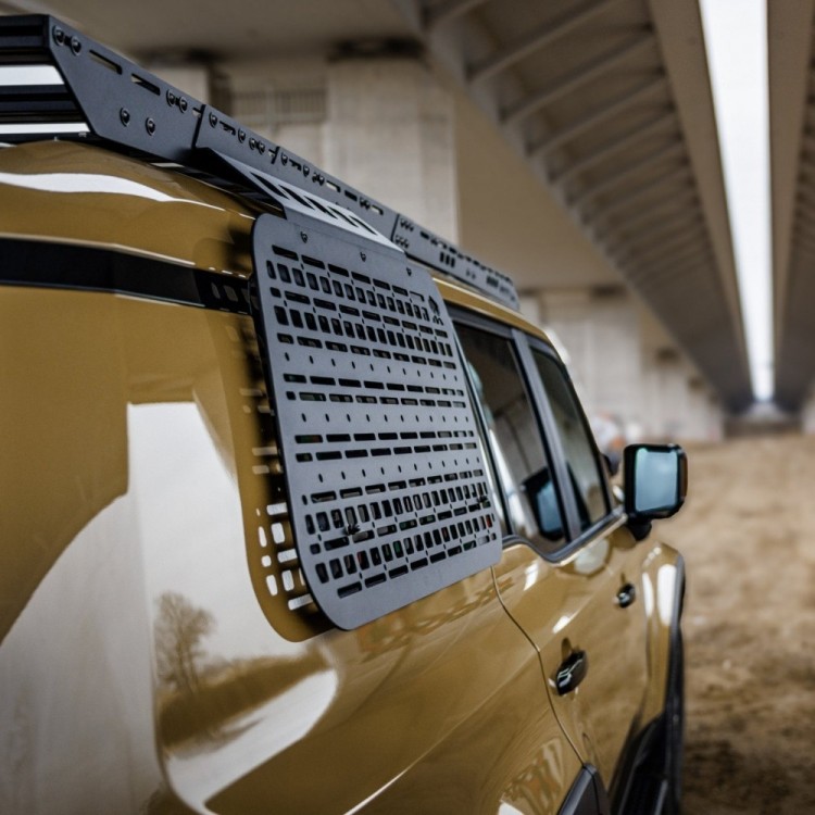 Wszechstronne możliwości. System MOLLE umożliwia montaż kanistrów, skrzyń transportowych, łopat czy innego niezbędnego wyposażenia. Panele montowane są na solidnych przyssawkach, które zapewniają stabilne trzymanie nawet podczas jazdy w trudnym terenie.