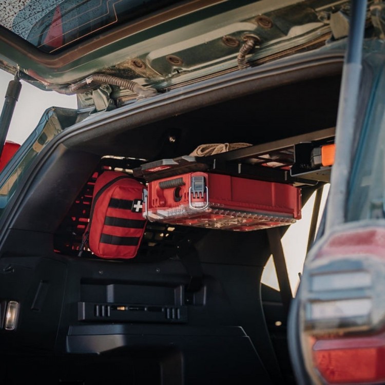 Kompatybilność. Półka współpracuje z innymi akcesoriami Bison Gear do 4Runnera, takimi jak Schowek na Krzesło czy Panele Wewnętrzne MOLLE.