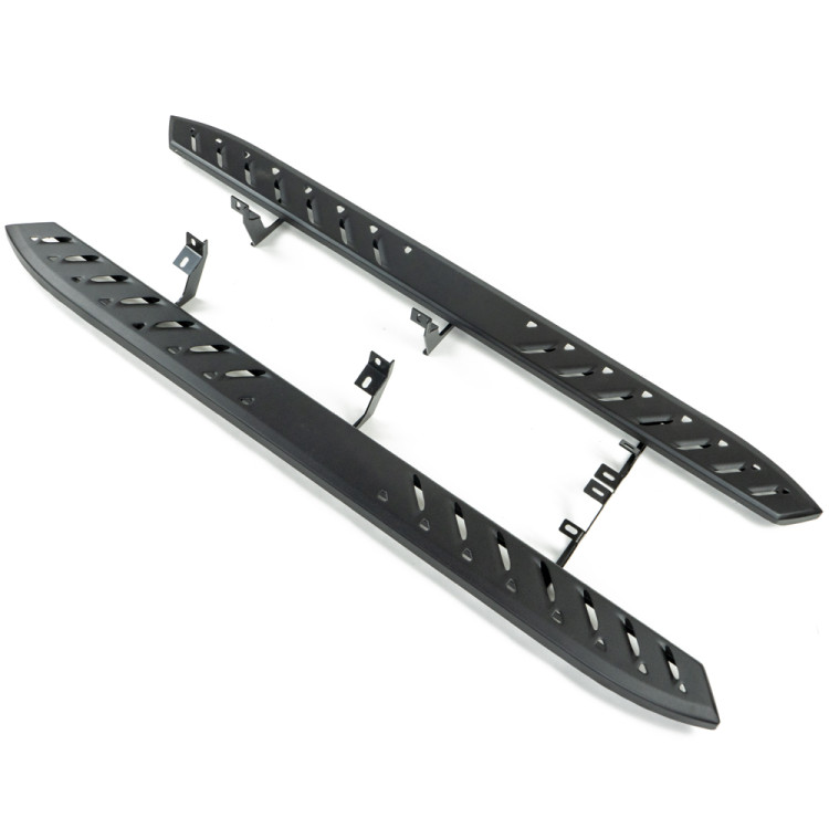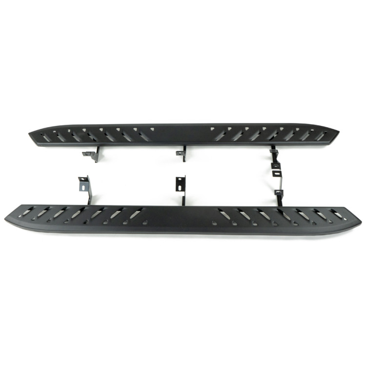 Progi boczne OFD to niezawodny dodatek do Twojego pojazdu, który łączy wytrzymałość z funkcjonalnością. Wykonane z wytrzymałej stali są gotowe sprostać nawet najcięższym wyzwaniom. Każdy stopień jest wyciskany z jednego arkusza blachy, co gwarantuje trwałość i niezawodność. Dodatkowo, stopnie posiadają nacinane rowki, które zapewniają pewność kroku, nawet w trudnych warunkach. Mocowania progów, trzy na każdą stronę, są wykonane z 5 mm stali, co przekłada się na znakomitą wytrzymałość i stabilność. Komfortowe korzystanie zapewnia odpowiednia długość 203 cm i szerokość 16,5 cm. Dodatkowo, od spodu stopnie zostały wzmocnione. Maksymalny udźwig na stopień wynosi imponujące 300 kg, co oznacza, że produkt to nie tylko estetyczne uzupełnienie Twojego pojazdu, ale również praktyczne rozwiązanie dla każdego kierowcy. Dzięki nim zyskujesz pewność kroku i dodatkową funkcjonalność.