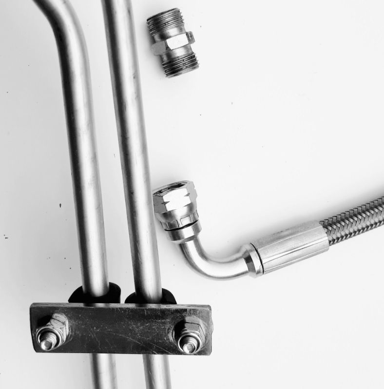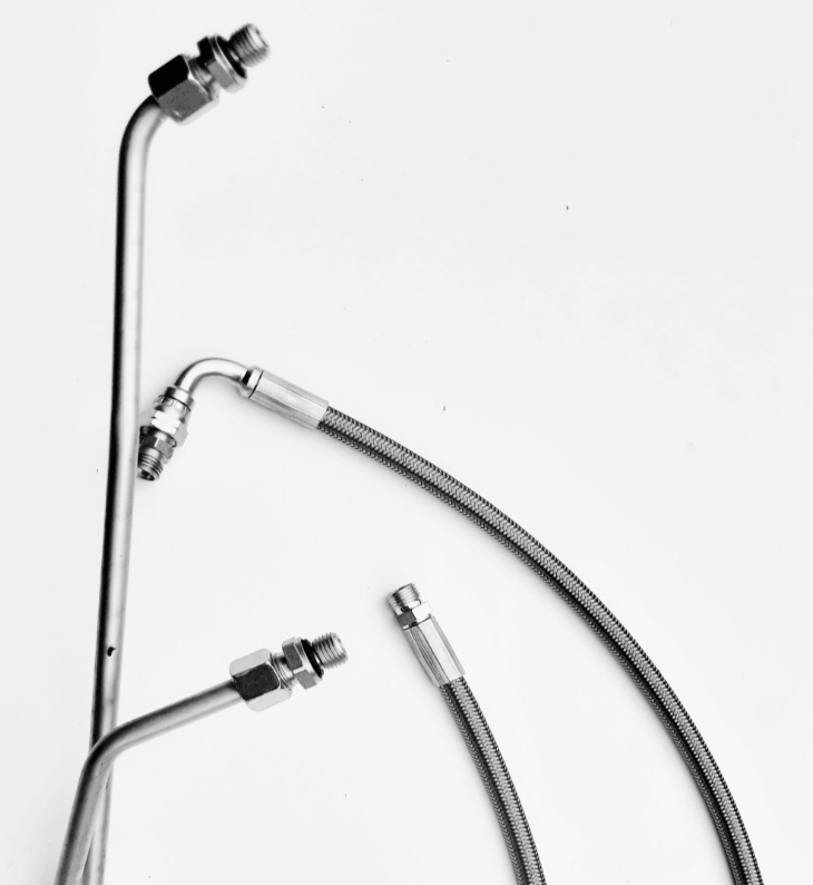 Nowe przewody olejowe do JEEP Cherokee XJ 4.0 AW4 . Zestaw pozwala na wymianę całego odcinka od skrzyni biegów do chłodnicy. Dokładne odwzorowanie geometrii rurek, oraz staranne  dopasowanie długości przewodów gumowych gwarantuje łatwy montaż i bezproblemową eksploatacje.  Przewody metalowe wykonane z rury hydraulicznej 10×1 zabezpieczonej  antykorozyjnie przez cynkowanie. Przewody gumowe odporne na wysoką temperaturę oraz wysokie ciśnienie,  wzmocnione oplotem tekstylnym.  Zestaw  przystosowany do 2 chłodnice płynu ATF. Zdjęcia przedstawiają zamontowany zestaw.