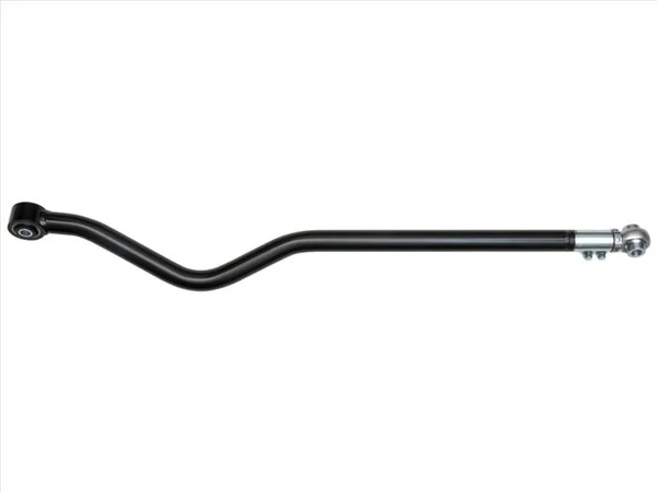 Drążek wykorzystuje wytrzymałe połączenie tulei wielotwardościowej (multi-durometer bushing) i łożyska przegubowego (rod end 3/4"), które razem eliminują ugięcia typowe dla fabrycznych tulei gumowych. Dzięki temu poprawia się precyzja prowadzenia, a także ogranicza ryzyko występowania zjawiska „death wobble”. Zwiększona sztywność i lepsza artykulacja pozwalają na pełny skok zawieszenia bez blokowania przegubów.