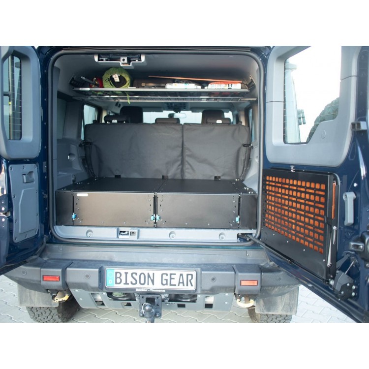 Praktyczne i innowacyjne rozwiązanie. Stolik Opuszczany Bison Gear to niezbędny dodatek do Twojego INEOS-a Grenadiera, stworzony z myślą o off-roadzie i overlandingu. Po złożeniu panel pełni funkcję mocowania MOLLE, umożliwiając wygodne przechowywanie niezbędnych akcesoriów.