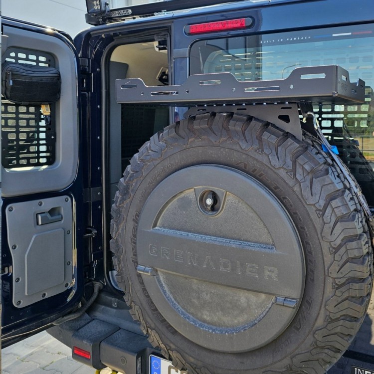 Uniwersalne dopasowanie. Konstrukcja pasuje do większości pojazdów i rozmiarów kół zapasowych. Montaż odbywa się bez wiercenia – za pomocą stabilnego systemu mocowania, który pewnie utrzymuje sprzęt nawet w trudnym terenie.