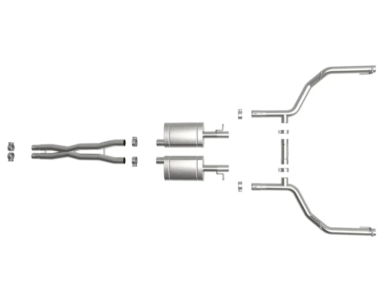 Układ wydechowy typu cat-back wykonany jest z rur ze stali nierdzewnej 304 o średnicy 2,5 cala, giętych metodą mandrelową, co zapewnia maksymalną wytrzymałość i trwałość.