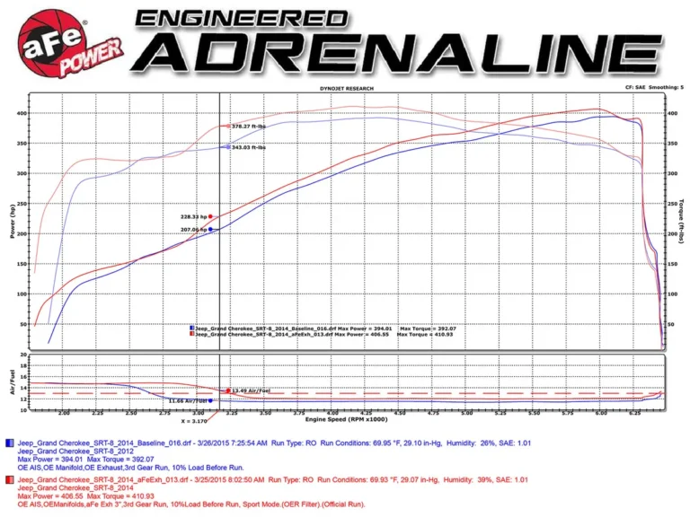 Układ wydechowy MACH Force XP cat-back dla Jeep Grand Cherokee SRT/SRT8 z silnikiem V8-6.4L HEMI lub V8-6.2L (SC) HEMI oferuje maksymalny przyrost +21 HP oraz +35 lbs. x ft. momentu obrotowego, co zostało zweryfikowane na naszej wewnętrznej hamowni. System ten został wykonany z giętych metodą mandrelową rur ze stali nierdzewnej, co zapewnia nieograniczony przepływ spalin, a jego konstrukcja spawana metodą MIG gwarantuje wytrzymałość i trwałość. Układ wykorzystuje podwójne tłumiki o wysokim przepływie oraz rury o średnicy 3 cale, co poprawia wydajność w całym zakresie obrotów, zapewniając jednocześnie świetny dźwięk i agresywny ton podczas zmiany biegów. Dodatkowo układ zawiera rurkę wyrównującą (X-pipe), która równomiernie rozprowadza impulsy spalinowe w całym systemie, poprawiając przepływ i wydajność.