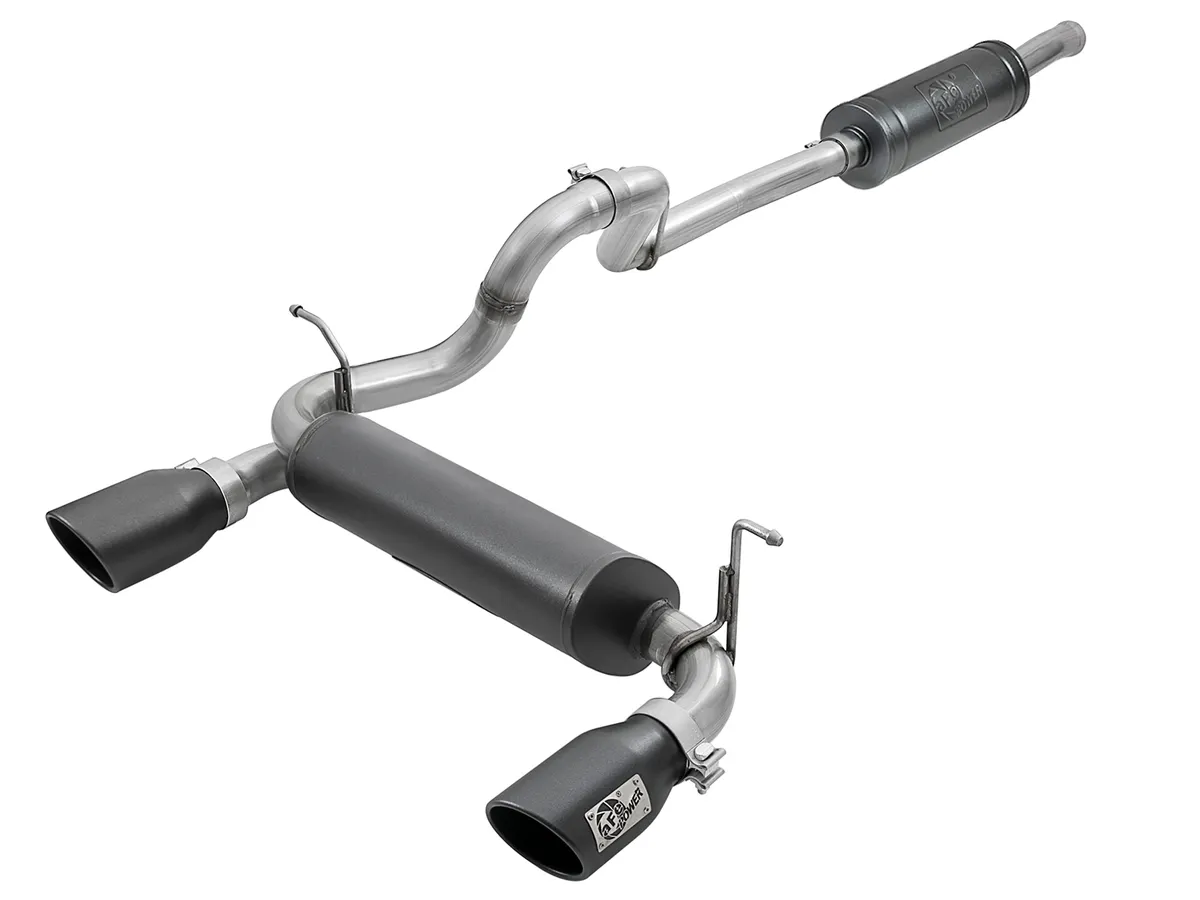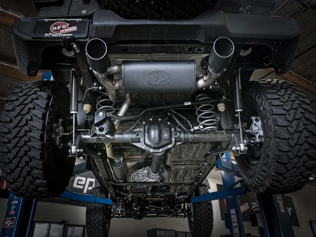 Rebel Series cat-back dla Jeepa JL zapewnia zwiększoną wydajność, gładki dźwięk i elegancki wygląd. System wykorzystuje rury o średnicy 2,5 cala, gięte na mandreli, wykonane z nierdzewnej stali 304. Ręczne spawanie metodą MIG gwarantuje wytrzymałość i trwałość na poziomie wyścigowym. Swobodnie przepływające tłumiki ze stali nierdzewnej generują płynny, głęboki dźwięk. Montaż jest prosty i wykorzystuje fabryczne punkty mocowania, zapewniając pewne dopasowanie w każdych warunkach drogowych. System kończą dwie 4,5-calowe, czarne, proszkowane końcówki wydechu ze stali nierdzewnej, ozdobione laserowo wycinanym logo aFe POWER, co nadaje mu unikalny, dopasowany styl.