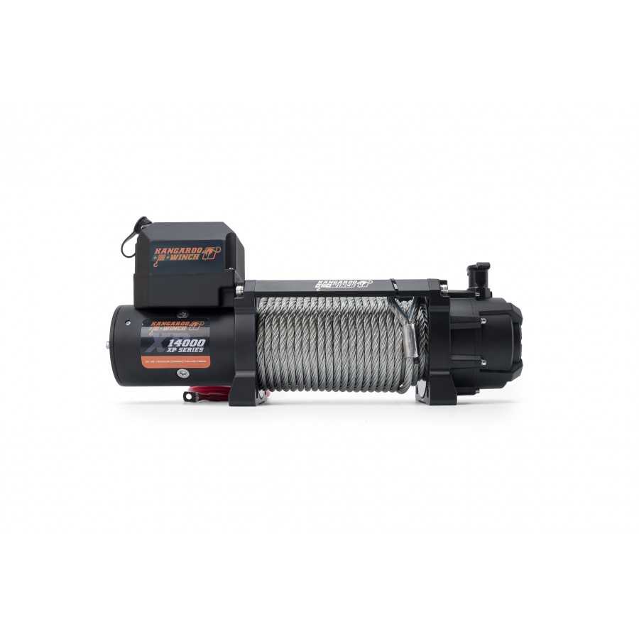 Kangaroowinch K14000XP to profesjonalna wyciągarka z serii XP, stworzona dla użytkowników, którzy potrzebują mocy, szybkości i niezawodności. Seria XP wyróżnia się wyjątkowo szybkim zwijaniem liny dzięki przełożeniu 218:1 i niezawodnemu, wodoodpornemu silnikowi szeregowemu o mocy 7 HP (5,2 kW). Prędkość zwijania liny bez obciążenia wynosi 9,3 m/min, a przy pełnym obciążeniu 1,3 m/min, co czyni ją jedną z najszybszych wyciągarek w swojej klasie.