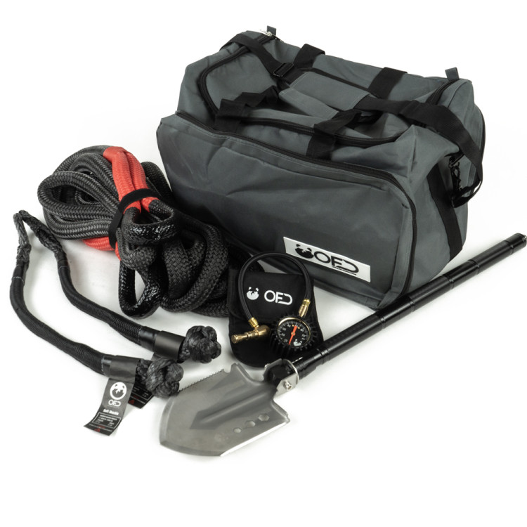 Zestaw OFD Kinetic 13K to zestaw stworzony z myślą o jeździe m.in w piasku , na przykład na pustyni czy na plaży gdzie brak wyciągarki nie jest problemem a wymagane jest użycie liny kinetycznej. Za pomocą dwóch miękkich szekli OFD bez problemu bezpiecznie zamocujesz linę kinetyczną do obu pojazdów a przed samym wyciągnięciem przyda się saperka do odkopania piasku, śniegu czy błota. Podstawą oczywiście będzie obniżenie ciśnienia w oponach za pomocą deflatora OFD.