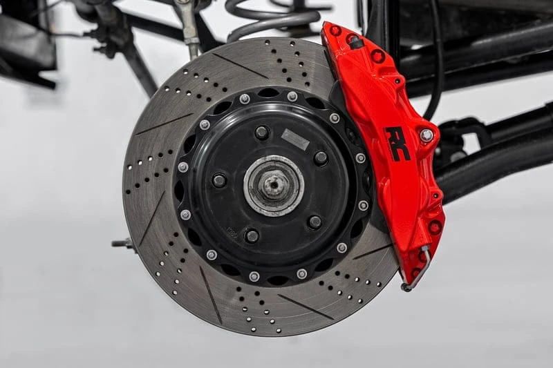 Zestaw przednich hamulców Performance został zaprojektowany z myślą o kierowcach Jeep Wrangler JK, którzy wymagają maksymalnej skuteczności hamowania zarówno w terenie, jak i podczas codziennej eksploatacji. Wzmocnione, 6-tłoczkowe zaciski, powiększone dwuczęściowe tarcze oraz stalowe przewody hamulcowe zapewniają znaczący wzrost siły hamowania, odporności cieplnej i precyzji działania układu.
